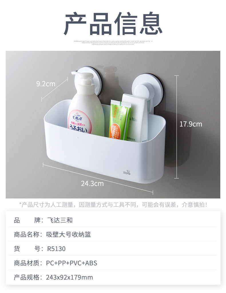 品牌名称:jiuyou登录入口三和 生产地区:中国·浙江·台州 jiuyou登录入口货号:R5130 装箱数:24 jiuyou登录入口尺寸:24.3*9.2*17.9cm 外箱尺寸:42*36*52cm 条形码:6931643817585 jiuyou登录入口三和R5130 强力吸壁大号收纳篮