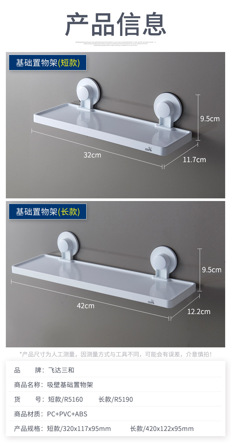 品牌名称:jiuyou登录入口三和 生产地区:中国·浙江·台州 jiuyou登录入口货号:R5160/R5190 装箱数:48 / 36 jiuyou登录入口尺寸:32*11.7*9.5 / 42*12.2*9.5cm 外箱尺寸:67.5*39.5*39 / 57*39.5*46.5cm 条形码:6931643817615 / 6931643817646 jiuyou登录入口三和R5160/R5190强力吸壁置物架