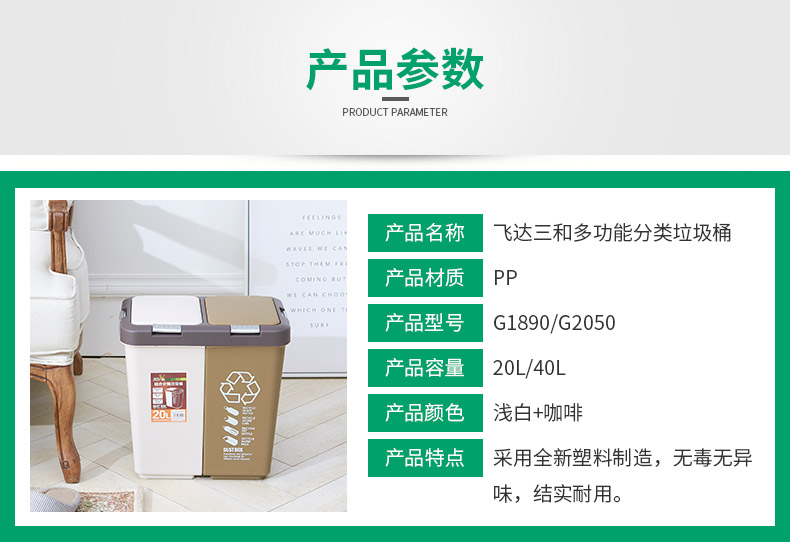 品牌名称:jiuyou登录入口三和 生产地区:中国·浙江·台州 jiuyou登录入口货号:G1890/G2050 装箱数:4/3 jiuyou登录入口尺寸:363*240*363/455*285*485 外箱尺寸:72*48*38/82.5*47*50 条形码:6931643811101/6931643812474 jiuyou登录入口三和G1890/G2050组合分类垃圾桶