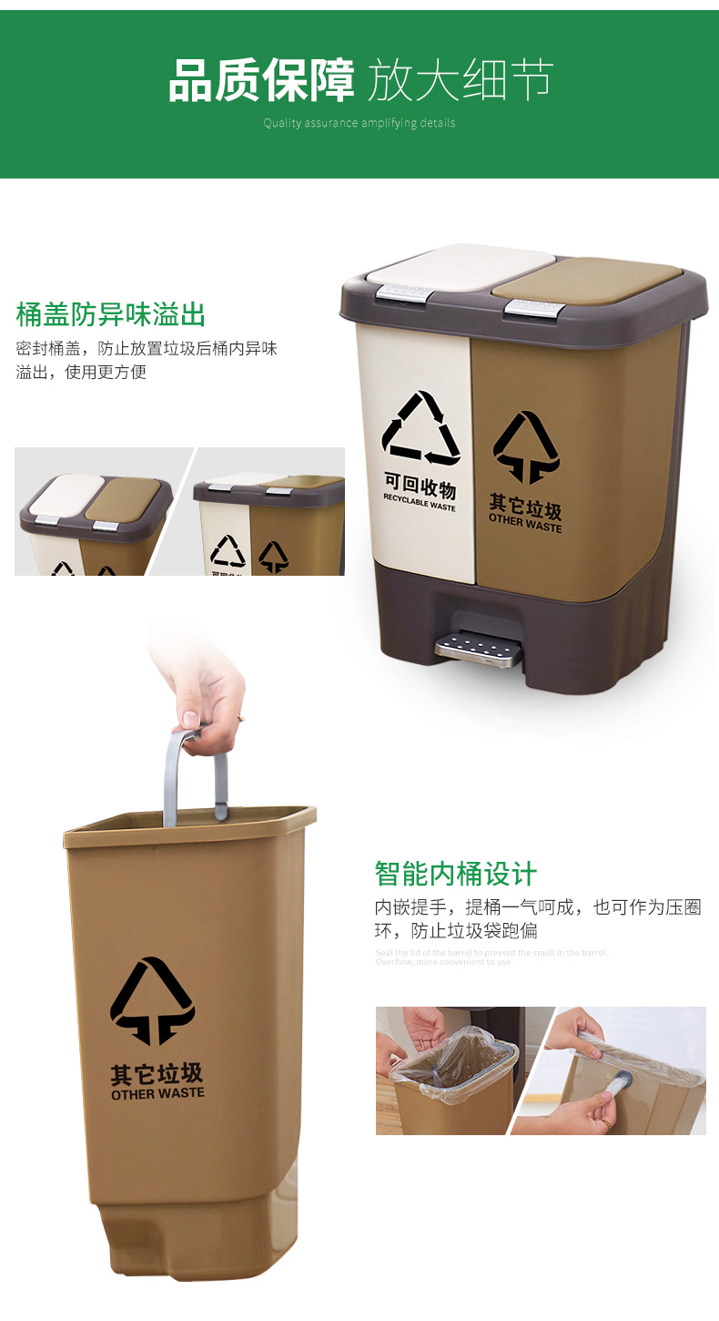 品牌名称:jiuyou登录入口三和 生产地区:中国·浙江·台州 jiuyou登录入口货号:G2470 装箱数:4 jiuyou登录入口尺寸:351*273*425mm 外箱尺寸:68*52.5*44.5cm 条形码:6931643816922 jiuyou登录入口三和G2470多功能分类垃圾桶(20L)