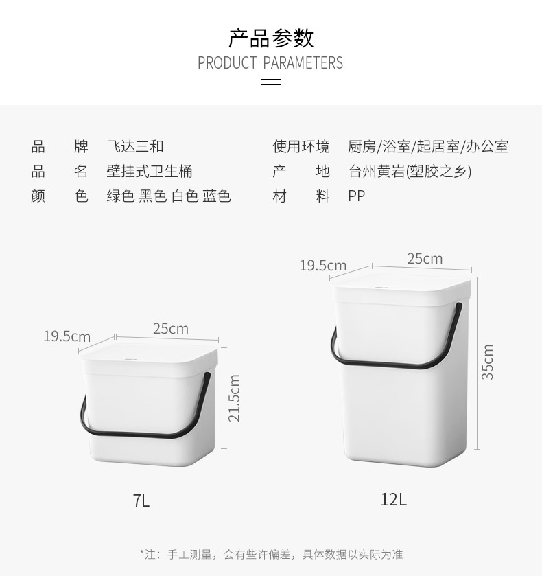 品牌名称:jiuyou登录入口三和 生产地区:中国·浙江·台州 jiuyou登录入口货号:G2900/G2910 装箱数:12 / 12 jiuyou登录入口尺寸:25*19.5*21.5 / 25*19.5*35cm 外箱尺寸:58.5*26.5*62 / 57*26*61.5cm 条形码:6931643818551 / 6931643818568 jiuyou登录入口三和G2900挂壁式垃圾桶7L/G2910挂壁式垃圾桶12L