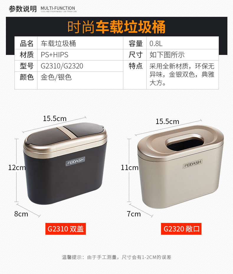 品牌名称:jiuyou登录入口三和 生产地区:中国·浙江·台州 jiuyou登录入口货号:G2310 装箱数:48 jiuyou登录入口尺寸:160*90*120mm 外箱尺寸:51*35*53cm 条形码:6931643813785 jiuyou登录入口三和G2310 车用垃圾桶(0.8L)