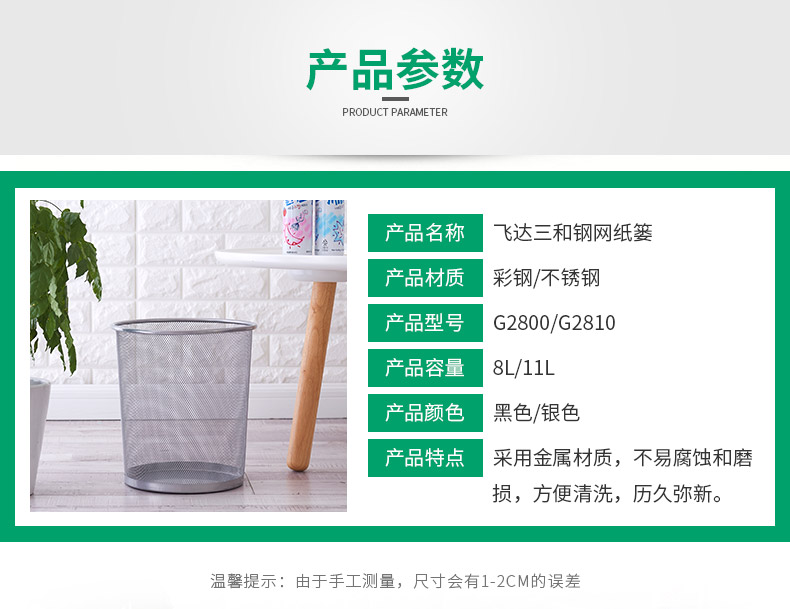 品牌名称:jiuyou登录入口三和 生产地区:中国·浙江·台州 jiuyou登录入口货号:G2800/G2810 装箱数:24 / 24 jiuyou登录入口尺寸:233*233*259 / 258*258*280mm 外箱尺寸:24.5*24.5*80 / 26.5*26.5*80cm 条形码:6931643816816 / 6931643816823 jiuyou登录入口三和G2800钢网纸篓8L/G2810钢网纸篓11L