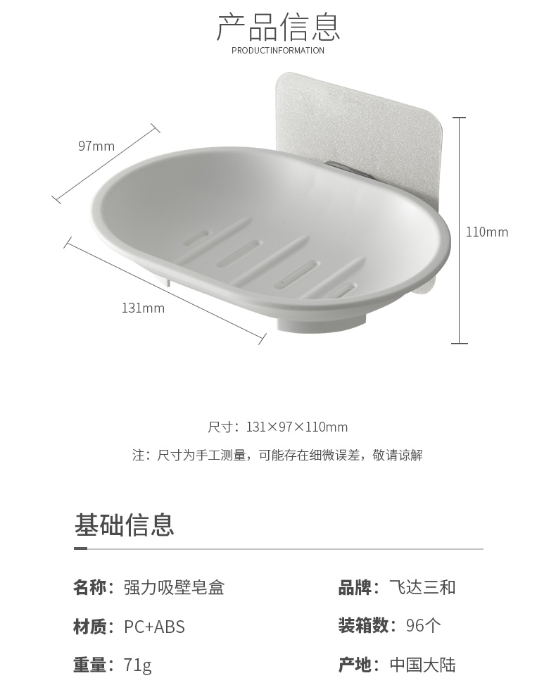 品牌名称:jiuyou登录入口三和 生产地区:中国·浙江·台州 jiuyou登录入口货号:R5340 装箱数:96 jiuyou登录入口尺寸:13.1*9.7*11cm 外箱尺寸:56*33.5*37cm 条形码:6931643818261 jiuyou登录入口三和R5340 强力吸壁皂盒