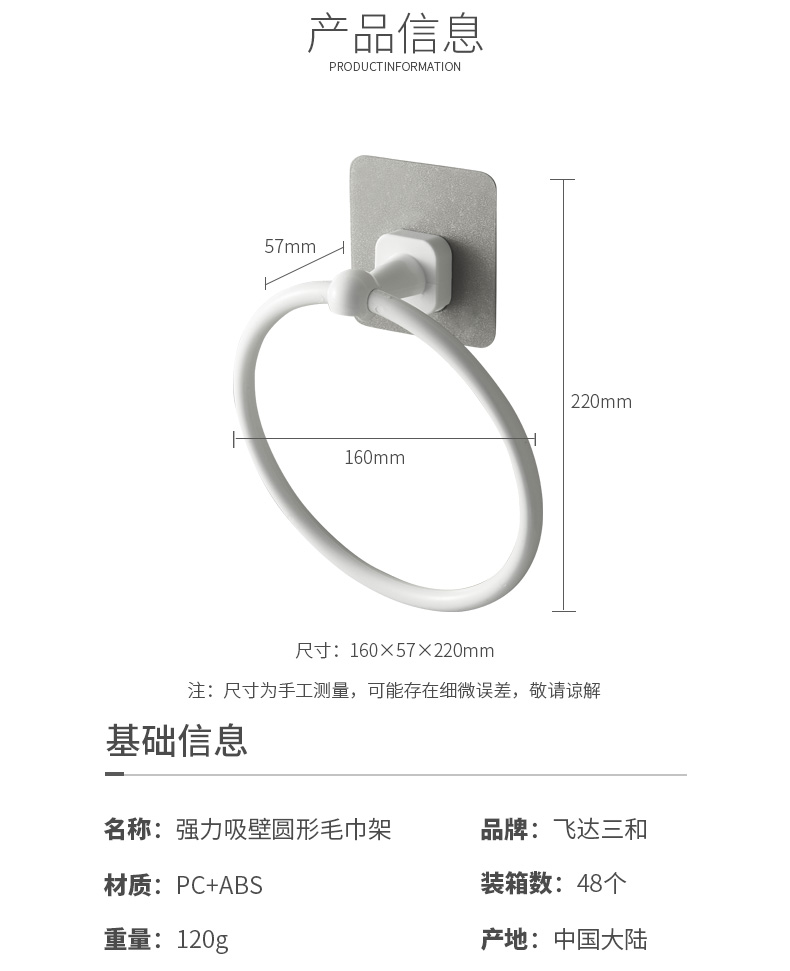 品牌名称:jiuyou登录入口三和 生产地区:中国·浙江·台州 jiuyou登录入口货号:R5480 装箱数:48 jiuyou登录入口尺寸:16*5.7*22cm 外箱尺寸:57*40.5*45.5cm 条形码:6931643818797 jiuyou登录入口三和R5480 强力吸壁圆形毛巾架