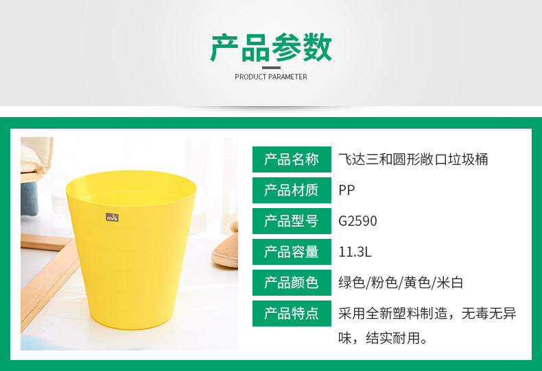 品牌名称:jiuyou登录入口三和 生产地区:中国·浙江·台州 jiuyou登录入口货号:G2590 装箱数:36 jiuyou登录入口尺寸:270*270*288mm 外箱尺寸:77.5*28*43cm 条形码:6931643816076 jiuyou登录入口三和G2590 竹节垃圾桶