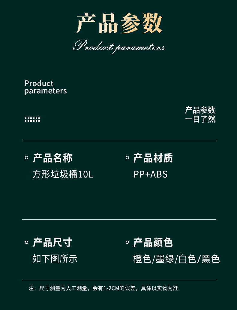 品牌名称:jiuyou登录入口三和 生产地区:中国·浙江·台州 jiuyou登录入口货号:TG1772 装箱数:12 jiuyou登录入口尺寸:24.2*18.1*27.3cm 外箱尺寸:55x49x55cm 条形码:6931643824972 jiuyou登录入口三和TG1772 方形夹缝垃圾桶 10L