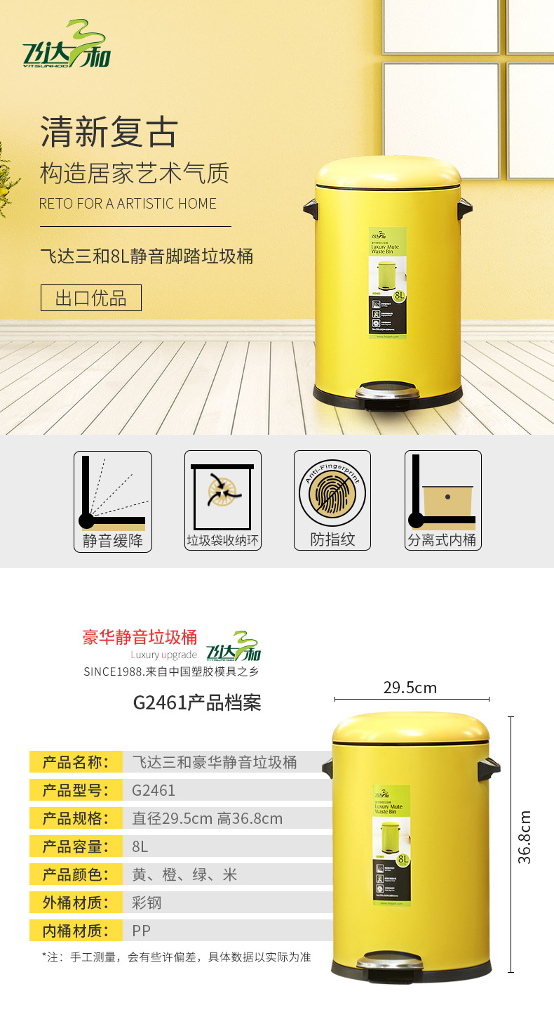 jiuyou登录入口三和G2451豪华静音垃圾桶(5L)/G2461豪华静音垃圾桶(8L)/G2581豪华静音垃圾桶(12L彩钢)jiuyou登录入口特点