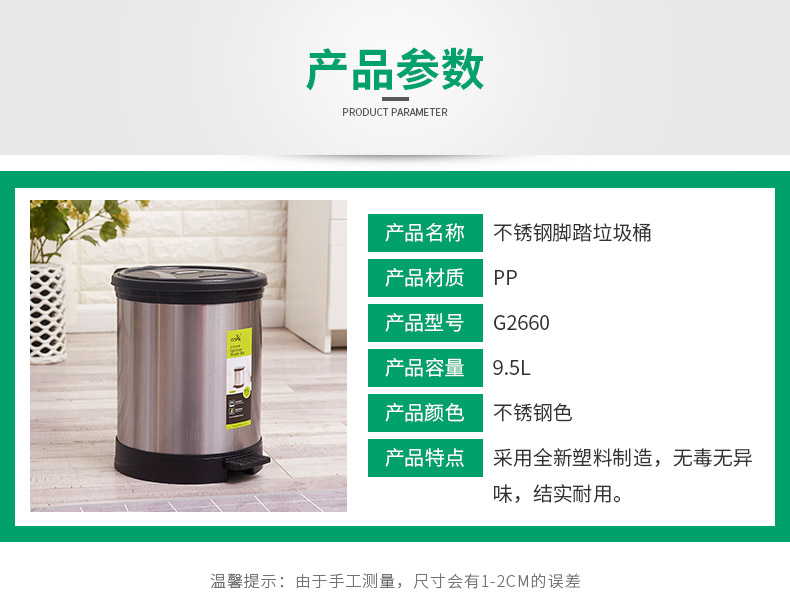 jiuyou登录入口三和G2660时尚垃圾桶(9.5L)(不绣钢)jiuyou登录入口特点